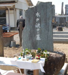 交流会の後、生涯学習センター近くの「水戸浪士の墓」に移動。円長寺ご住職、柴田敦様に読経していただき、参拝しました。