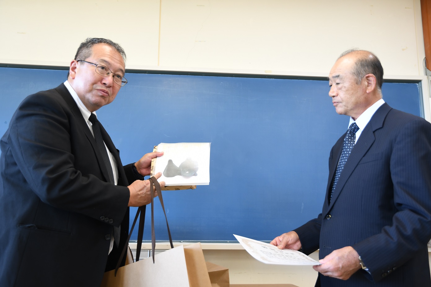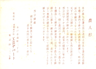 その後、戦没者の供養に貢献してくださった4団体、「龍性院様」、「中台区民様」、「水戸藩士の史跡を顕彰する会様」、「円長寺様」に感謝状を贈り感謝の気持ちを伝えると共に、記念品として、裂公ゆかりの「農人形」を贈りました。