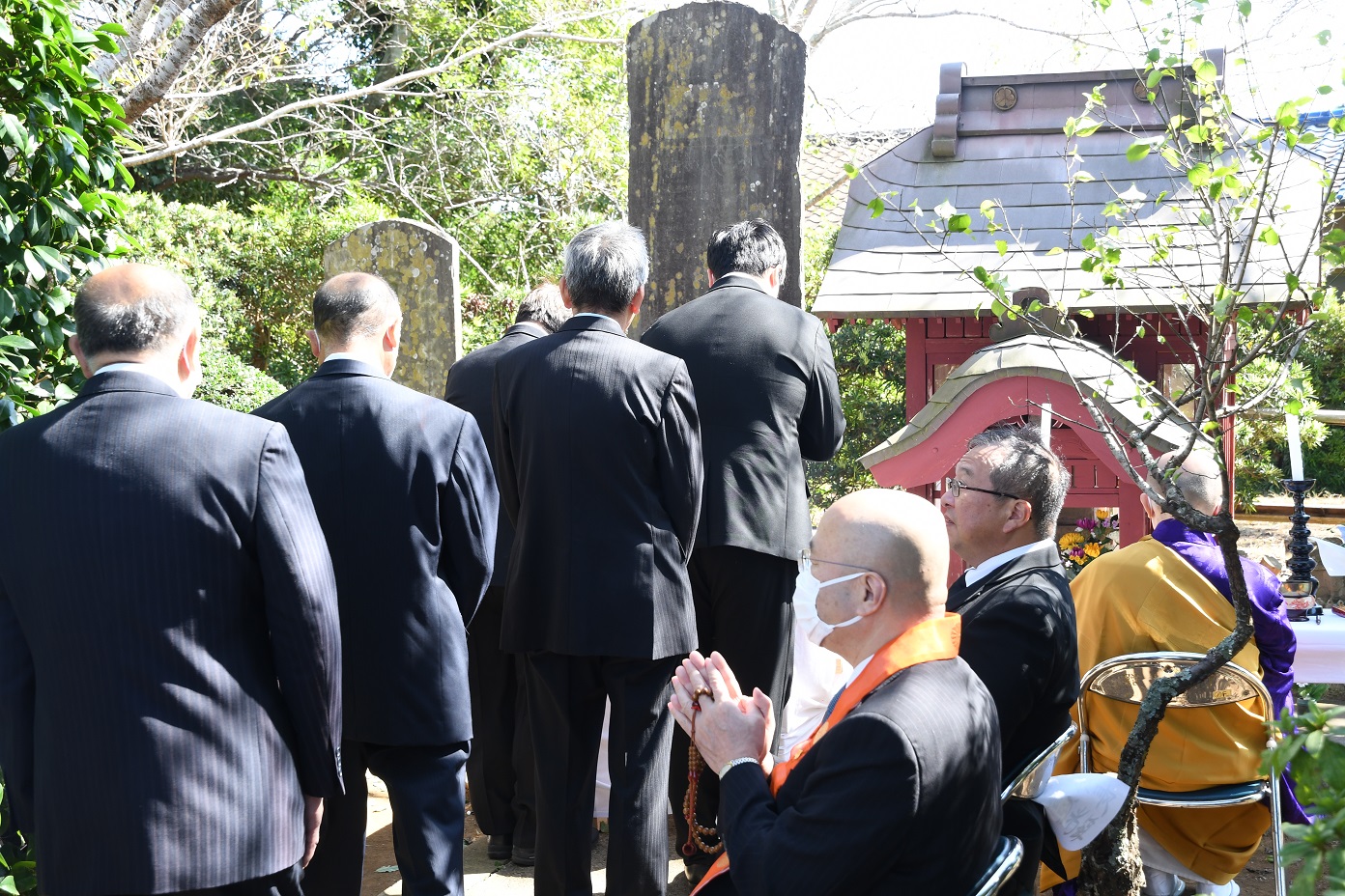 本日ここに、幕末の争乱終結から155年目の水戸藩国事殉難者慰霊法要を行うにあたり、ご来賓の皆様ご臨席のもと、参列者の皆様と共に、当地戦没者の皆様に謹んで哀悼の意を表します。