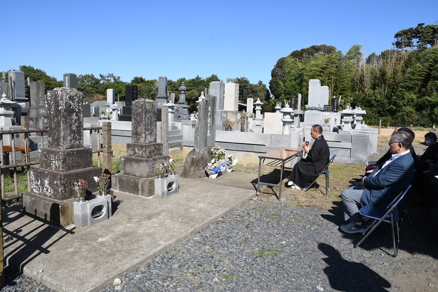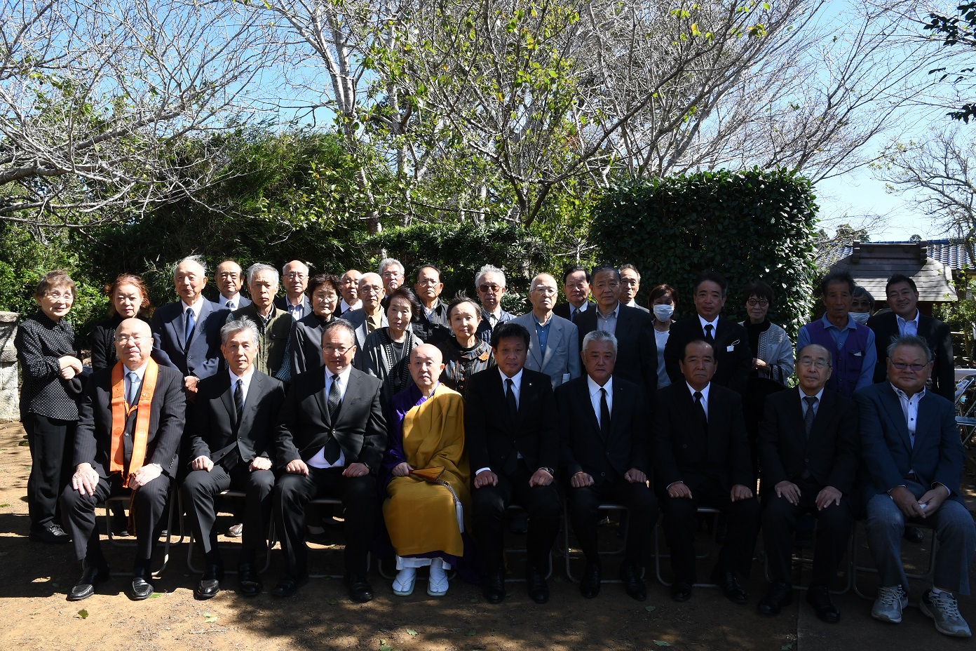 また、地元匝瑳市の皆様は、松山戦争直後から、戦没者を厚く供養して来てくださいました。明治2年には戦死二十五人の墓、明治21年に21回忌法要、大正15年に水戸藩志士弔魂碑建立、昭和35年八日市場市文化財指定、昭和41年百年祭挙行。平成21年には「水戸藩士の史跡を顕彰する会」の皆様が、きられ様の場所を特定し、水戸浪士の墓を建立してくださいました。本日は、匝瑳市市長宮内様を始めとする多くの地元の皆様が参列してくださっています。私共は、匝瑳市の皆様に厚く御礼を申し上げると共に、末永く交流を行い、共に水戸藩士の顕彰を行って参ります。