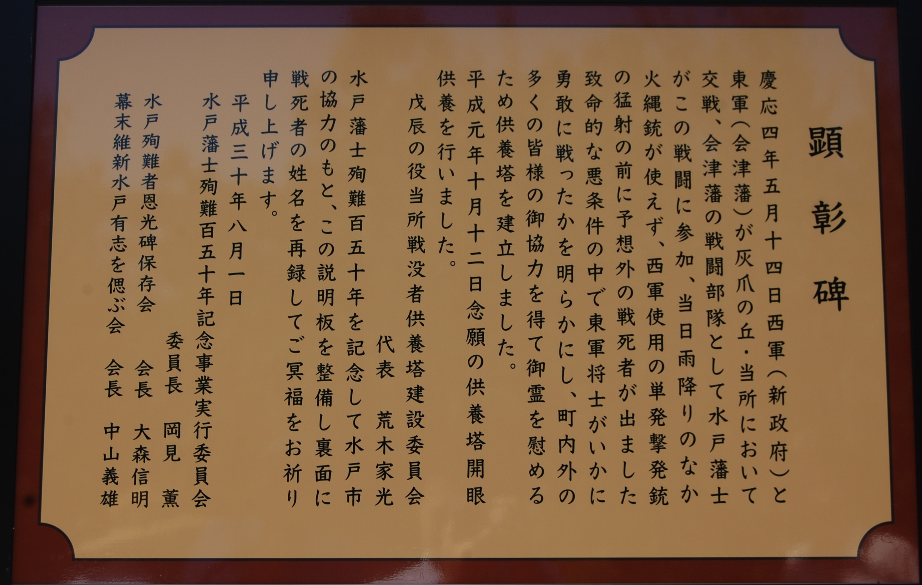 | 平成30年(2018)5月 | 灰爪 慰霊祭 水戸藩士殉難150年記念事業実行委員会 主宰 |